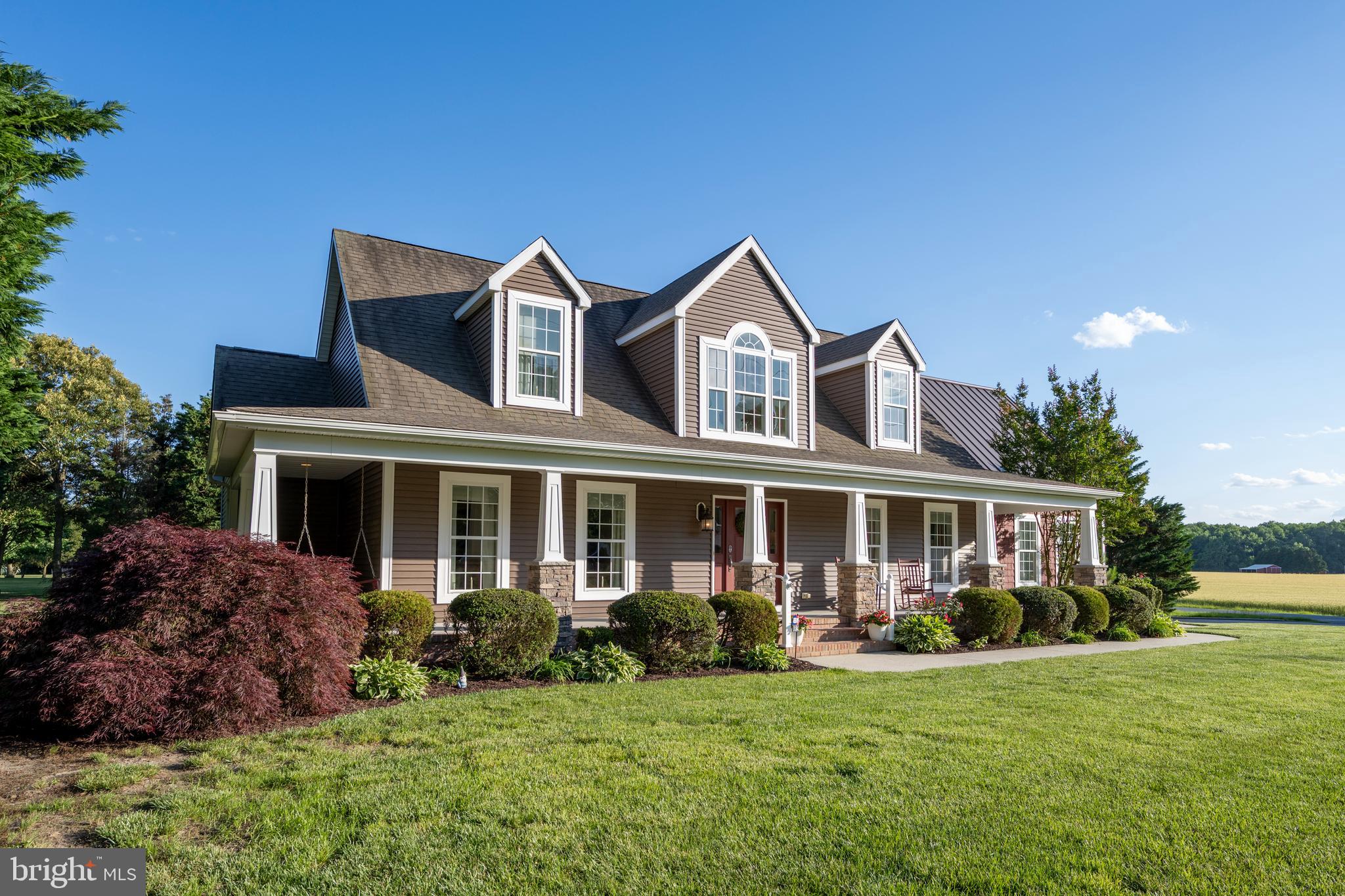 Impeccably maintained, this beautiful Cape Cod style home sits on one acre of lush and well-manicured property. A charming front porch with stone based-columns greets you, including an attached double-seat swing, with ample room for plenty of seating. Upon entering, a two-story foyer creates a wonderful first impression, with an open staircase leads to the second floor with three guest rooms and full bath. The largest of the those bedrooms could double as a media or entertainment space. The living room lies off of the foyer and also opens to the dining area with sliding glass doors to the rear deck. Entertainers cooks will enjoy the gourmet-style kitchen with stainless steel appliances and granite counters. Primary bedroom and en suite bath are conveniently situated on the first floor. Enjoy quiet dinners on the large rear Trex deck overlooking the private yard that features a 6-zone sprinkler system. Being sold fully furnished, this home was a successful rental in recent years. This special property must be seen to be fully appreciated! Make your showing appointment today.